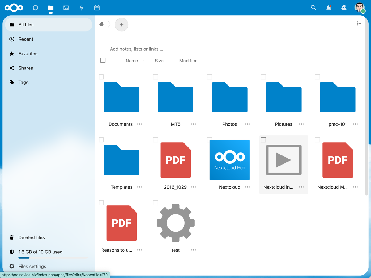 NextCloud: Cloud storage (standard storage capacity: 4GB ⇒ 10GB)